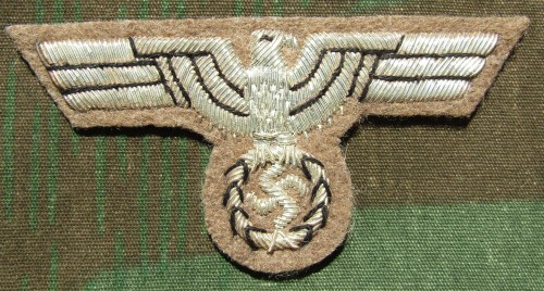 RSE5.German Army Afrika Korps officers breast eagle. Embroidered silver wire on Tan. $15.00