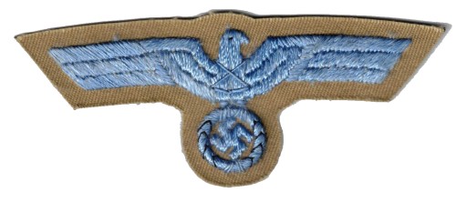 RSE67.German Army Afrika Korps enlisted ranks breast eagle. Embroidered Light Blue thread on Tan. $15.00