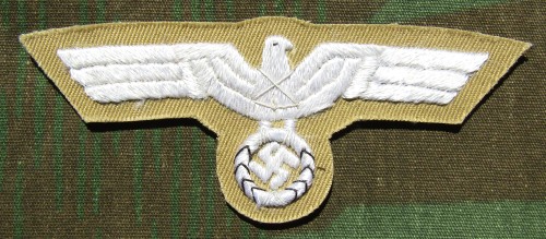 RSE69.German Army Afrika Korps enlisted ranks breast eagle. Embroidered White thread on Tan. $15.00
