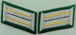 GERMAN ARMY CAP EAGLES GERMAN ARMY CAP COCARDES GERMAN ARMY OFFICER BREAST EAGLES GERMAN ARMY ENLISTED RANKS EMBROIDERED BREAST EAGLES GERMAN ARMY ENLISTED RANKS BEVO BREAST EAGLES GENERALS BREAST EAGLES FELDGENDARMERIE GERMAN ARMY ENLISTED RANKS COLLAR TABS GERMAN ARMY OFFICER COLLAR TABS RSE60.Army officer collar tabs.Golden yellow piping.Cavalry. Aluminum bullion.$20.00pr Panzer collar tabs Army cufftitles Miscellaneous Cufftitles Sleeve Rank Shoulder board rank pips German Army enlisted rank Shoulder Boards Grossdeutschland Unterofficer NCO shoulder boards UNTERFELDWEBEL NCO rank shoulder boards Grossdeutschland Unterfeldwebel NCO shoulder boards on Dark Green wool German Army junior officer shoulder boards German Army General shoulder boards German Field Marshal shoulder boards RFMB1.Reproduction Field Marshal batons, army pattern. $15.50 each GERMAN ARMY SLEEVE PATCHES VEHICLE PENNANTS Order Using Our Secure Order Form Copyright 1997-2025 Trident All Rights Reserved