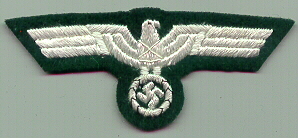 RSE43.German Army Generals breast eagle on Dark Green. Overall about 4.4" x 1.75". $15.00