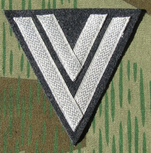 RSE557.Luftwaffe Obergefreiter sleeve chevron. Aluminum tress on black wool. $10.95