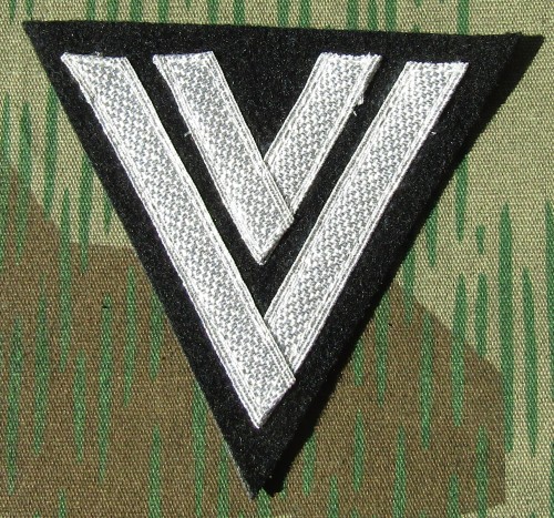 RSE556.Luftwaffe Gefreiter sleeve chevron. Aluminum tress on black wool. $9.95