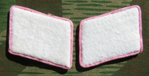 RSE614.Luftwaffe enlisted ranks collar tabs.Green cloth with Pink piping