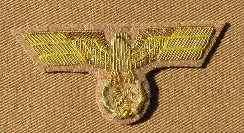 RSE581.NSDAP cap eagle. Gold bullion on tan felt. $13.95pr |