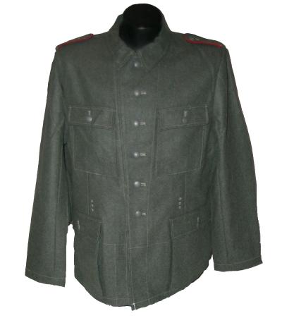 field gray Cotton M36 Officer tunics. These tunics feature pleated pockets with scalloped flaps, shoulderboard loops, hook and eye at the collar. Available in sizes small, Medium, Large, XL, XXL. $139.95 |