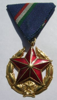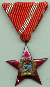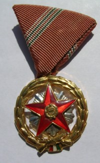 Merit medal 1st class .Hungarian flag on red star in gold wreath.With ribbon. $35.00 |