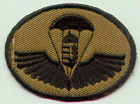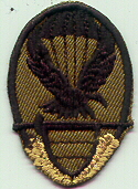 PARACHUTE SLEEVE PATCH. Light blue cloth on black felt.