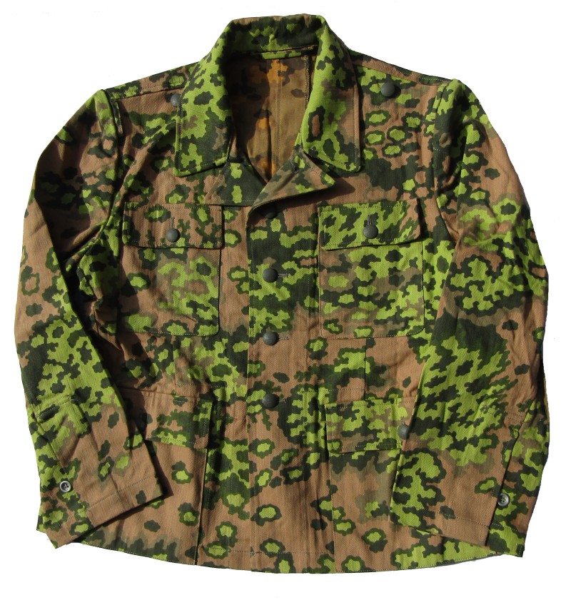 WW2 M44 Waffen SS DOT pattern jackets. Nice heavy 100% Cotton twill fabric, Roller printed. 4 pocket with loops and buttons for shoulder boards. $39.95 |
