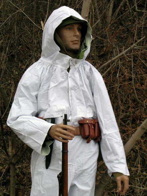 SCS15.Soviet 2pc all WHITE snow camouflage sniper suit with hood