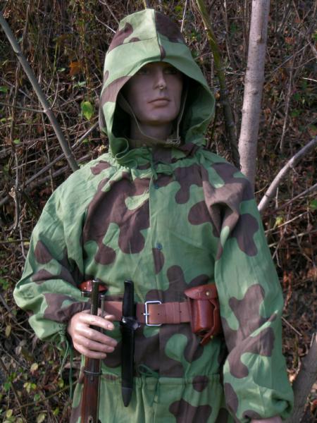 SCS10.Soviet 2pc Brown leaf pattern WINTER camouflage smock and pants set with hood and face viel. Issued 1941-1942.
