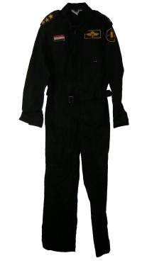 | IU2.Saddam Fedayeen officers black coverall. Has shoulder boards, sleeve patch, 2 breast patches. SOLD |