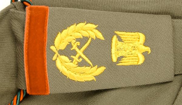 | IU18.Iraqi Army / Republican Guard tan desert color uniform. Jacket and pants. Size XL. Comes with sleeve patches, shoulder cord, beret size 58. Saddam era, Iraqi made. $225.00 |