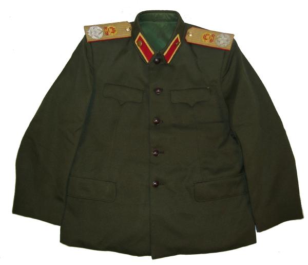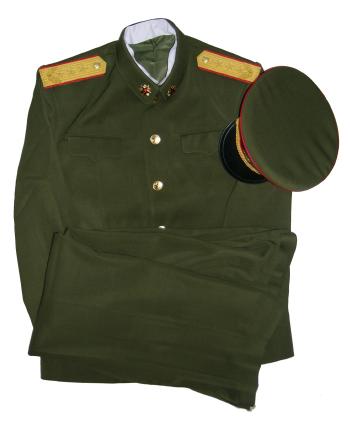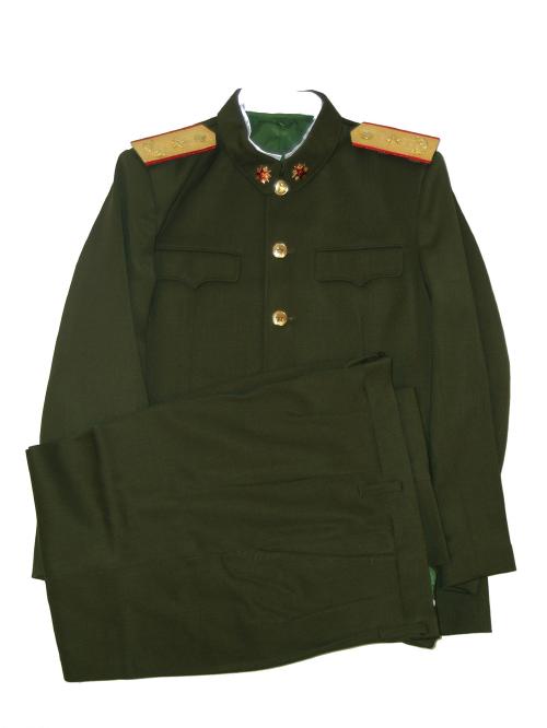 uniform. Includes jacket,pants,hat. Nice heavy fabric, well marked. Have hat sizes 58,59. Shoulder boards have 3 embroidered gold stars and wreath. Size of the jacket is 44-46, pants 38" waist. $475.00 Beautiful uniform. Also available in Jacket size about 42 ", waist size 36" |