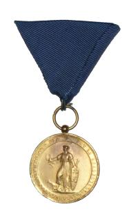 Gilt bronze. With original pentagonal ribbon, red and blue strips, also with ribbon