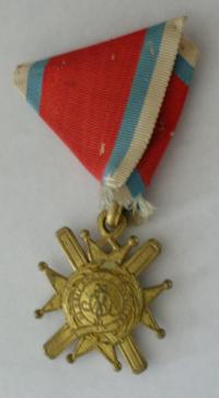 Medal of National Merits. Inscription in Roman Script. Gilded bronze; with pentagonal ribbon on a metal base. With ribbon bar.$15.00 YM142A.Yugoslav Medal of National Merits. Inscription in Roman Script. |