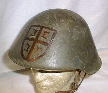 CAHMT16.Yugoslav helmet with red bar in center possibly to show Lt.