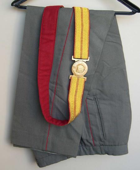 hat, parade belt. Tunic is size 50/177 and is dated 1990. Pants have red piping and are