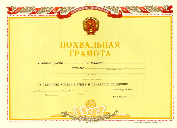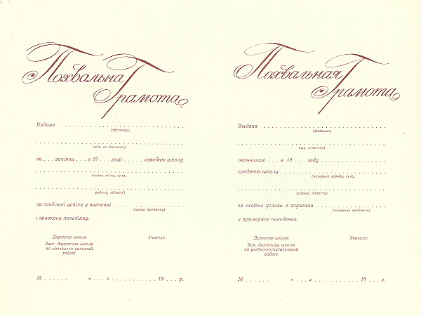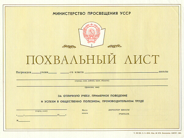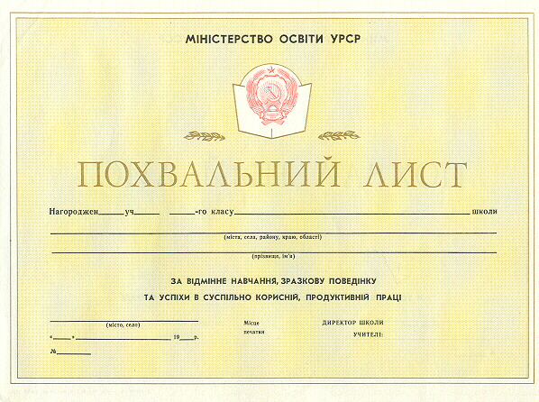DC7-Ukrainian single sided document. Ukrainian text.Given for graduation with high grades after each school year.